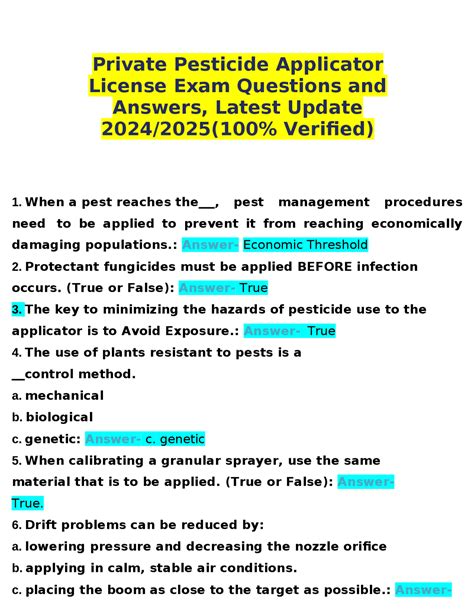 Download Private Pesticide Applicator Test Answer Sheet PDF